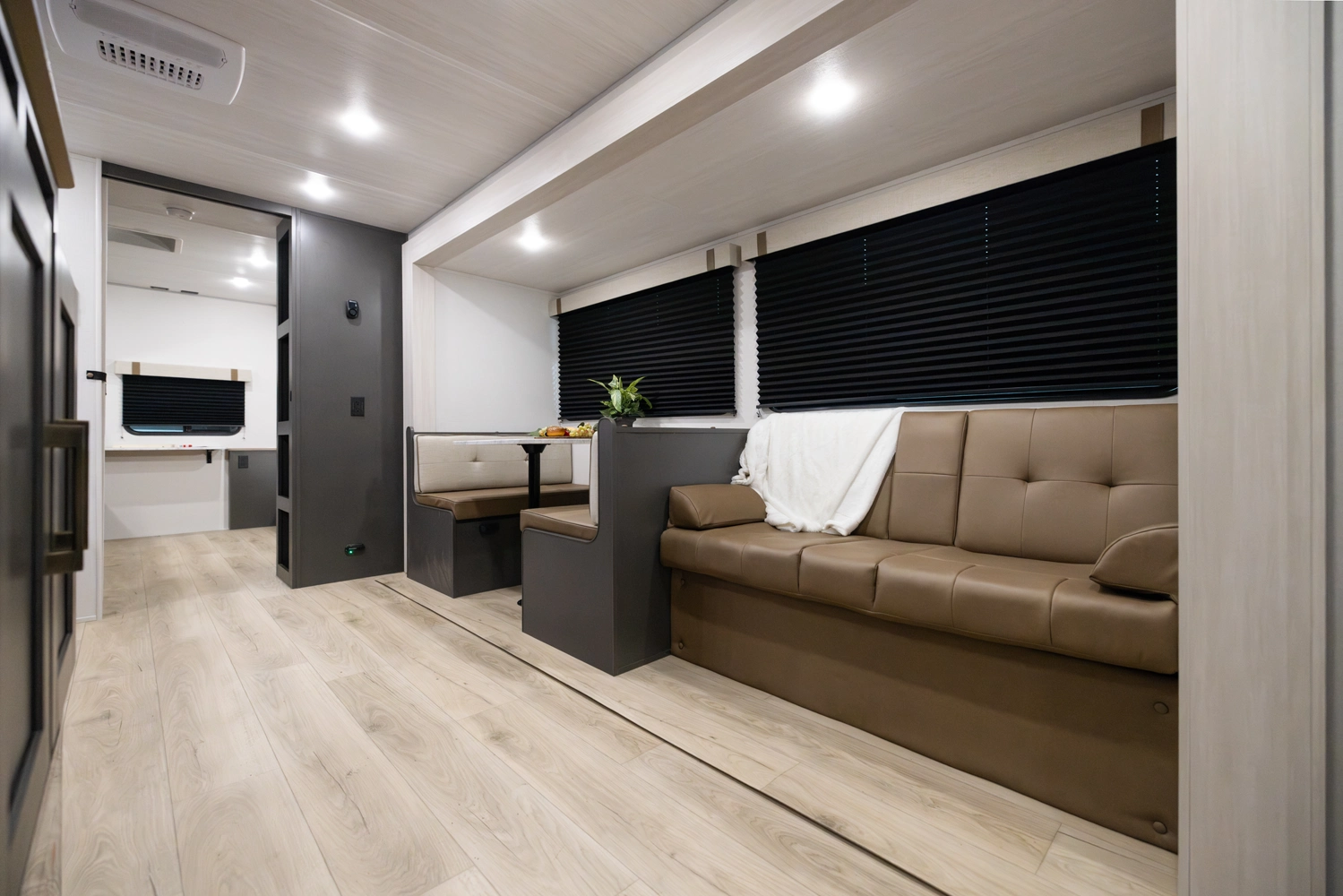The 2026 Ibex New Trail Edition TRAIL31 offers a front queen bed, a central living area with dinette & sofa, and a private rear bunk room — perfect for kids or guests. It features a walk-through bathroom and a full kitchen with microwave/air-fryer and 10 cu ft fridge. Includes 50-amp service, washer/dryer prep, and a tankless water heater, designed with superior construction.